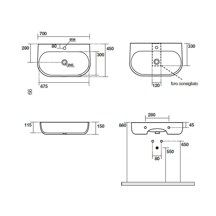 В комплекте вы получите саму подвесную раковину и необходимый крепежный набор для монтажа. Сифон, смеситель и перелив приобретаются отдельно, что дает вам свободу выбора дизайна и функционала под ваш интерьер. Точный список комплектующих указан в инструкции к модели.
