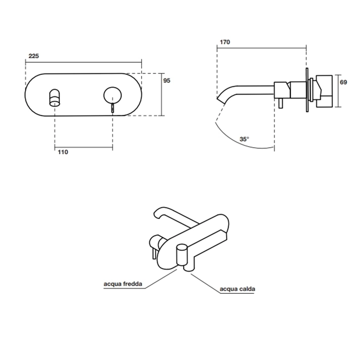 Длина излива составляет 170 мм. Такой размер оптимален для большинства раковин: вода попадает точно в центр чаши, minimizing разбрызгивание и обеспечивая комфортное мытье рук или небольших предметов.