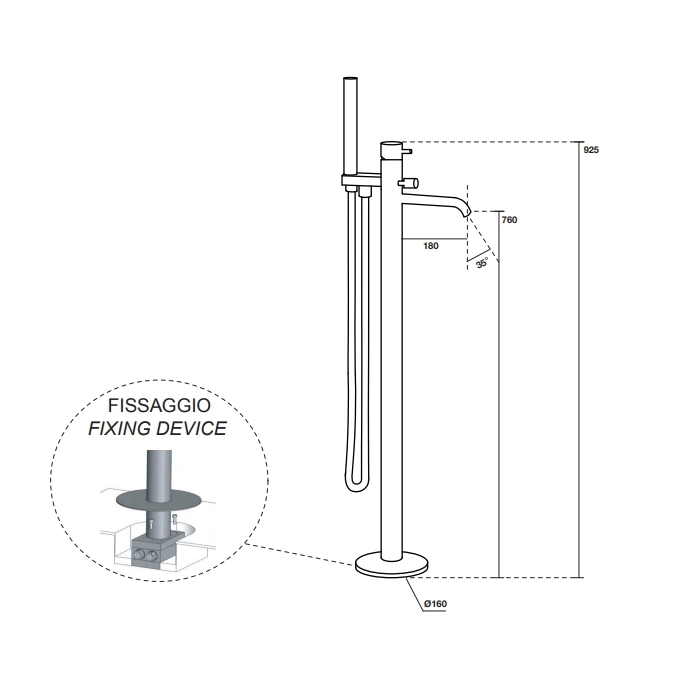 - Совместимость: подходит для ванн с установочным отверстием или может монтироваться рядом на прочном полу, включая такие материалы, как кафель, мрамор или талькохлорит.