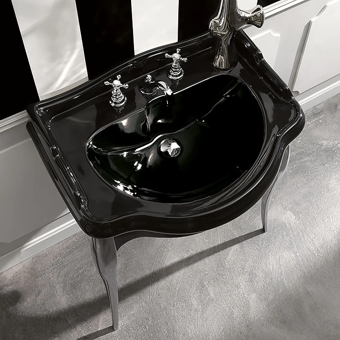 Раковина KERASAN Retro 73, 73x54 см, 3 отверстия, глянцевый черный (104704 nero*3)