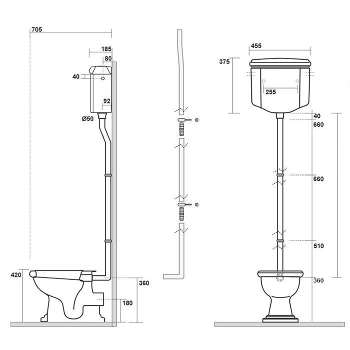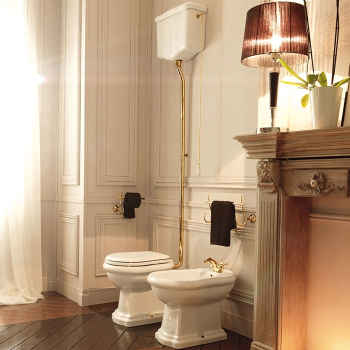- Для ценителей классического стиля. Если вы создаете интерьер в духе викторианской эпохи, ар-деко или просто хотите добавить нотку ностальгической элегантности, этот бачок с высокой трубой станет центром притяжения вашей ванной комнаты.