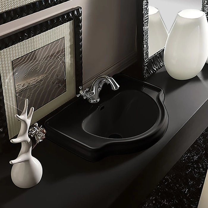 Эта модель - универсальный стилевой акцент. Она идеально впишется в современные интерьеры (лофт, минимализм, хай-тек), добавит контраста в классическую ванную, станет ключевым элементом в драматичном дизайне. Черная раковина Retro эффектно сочетается с медной, латунной или хромированной арматурой, а также с деревянными и каменными столешницами.