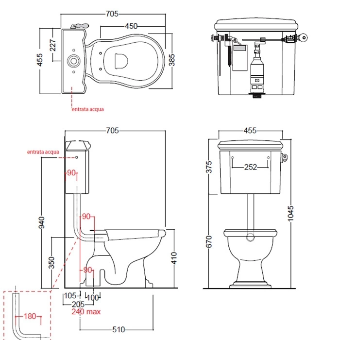Арматура для бачка KERASAN: обзор хромированной трубы для низкого бачка (757190)