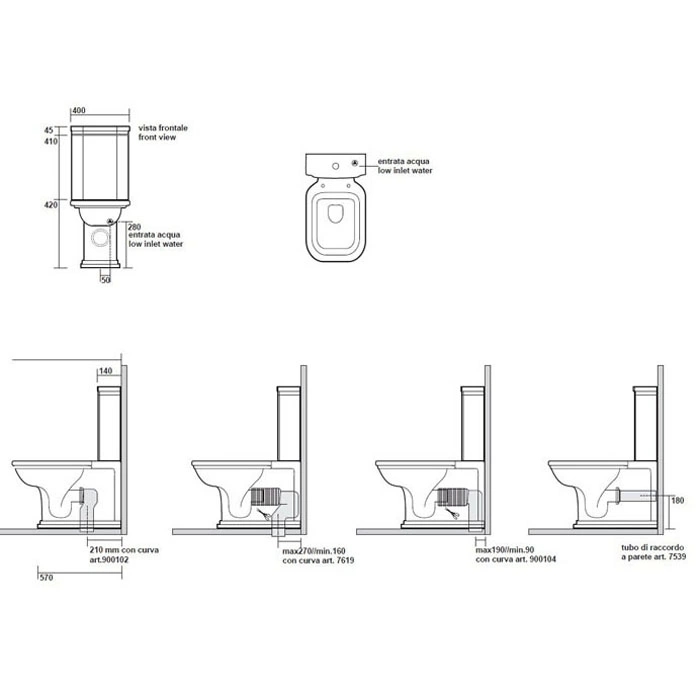 - Назначение: Для унитазов-моноблоков (компакт) с отверстием под боковой спуск