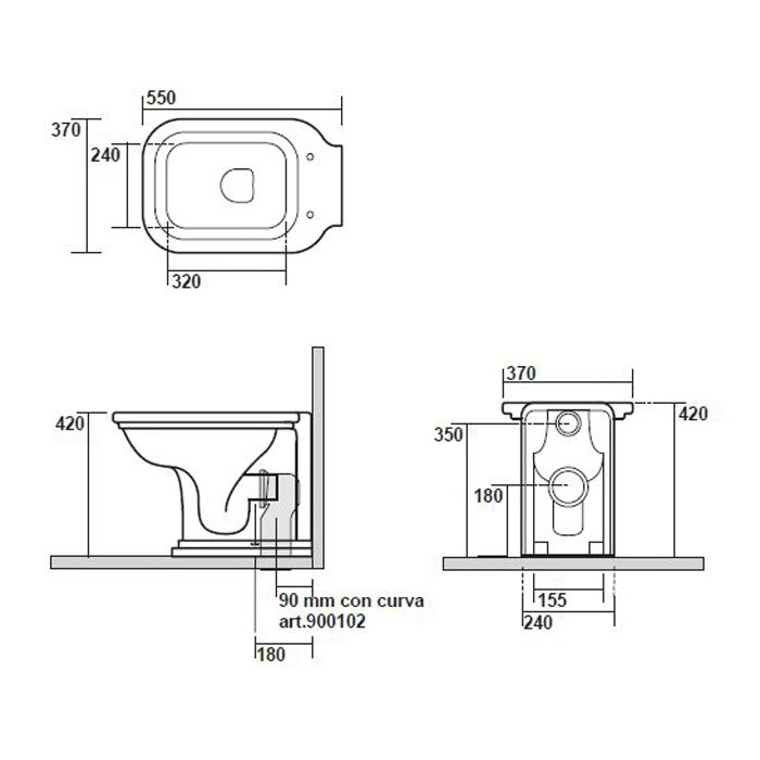 Технические характеристики унитаза Kerasan Waldorf 55х37 см