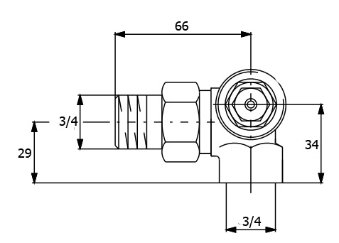 - Присоединение: угловое, резьбовое 3/4" (наружная/внутренняя).