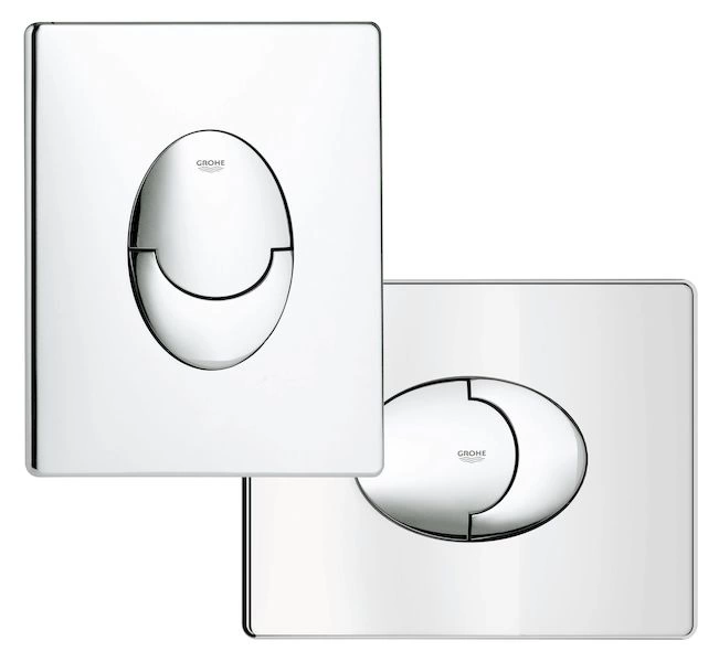 Это двухрежимная кнопка смыва для встраиваемых систем Grohe. Модель предназначена для скрытого монтажа и устанавливается на инсталляционные рамки производителя. Её эргономичный дизайн и надежная механика делают управление сливом интуитивно понятным и долговечным.