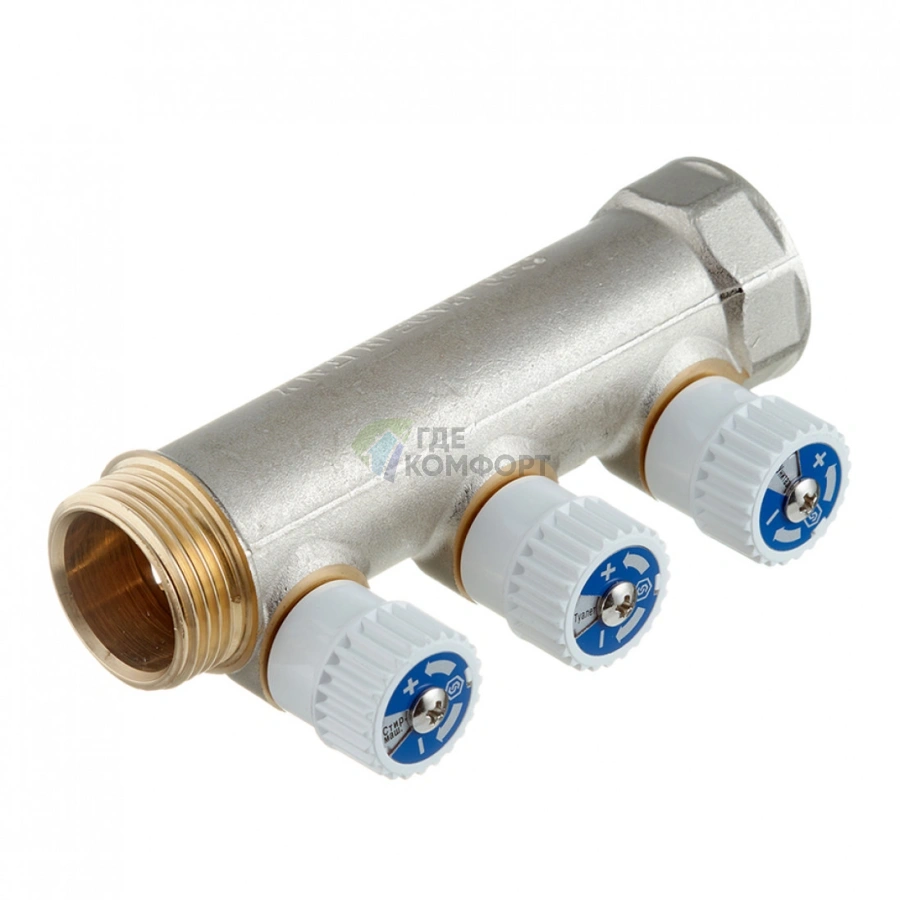 Коллектор распределительный Stout (SMB 6851 013403) 1 ВР(г) х 3 выхода 3/4 НР(ш) ЕК х 1 НР(ш) регулируeмый