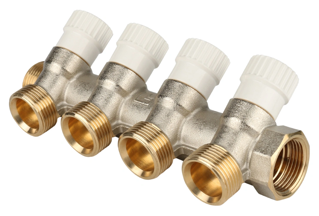 - Конфигурация подключения: 1 входной порт (ВР) на 1 дюйм с внутренней резьбой и 4 выходных порта (НР) на 3/4 дюйма с наружной резьбой.