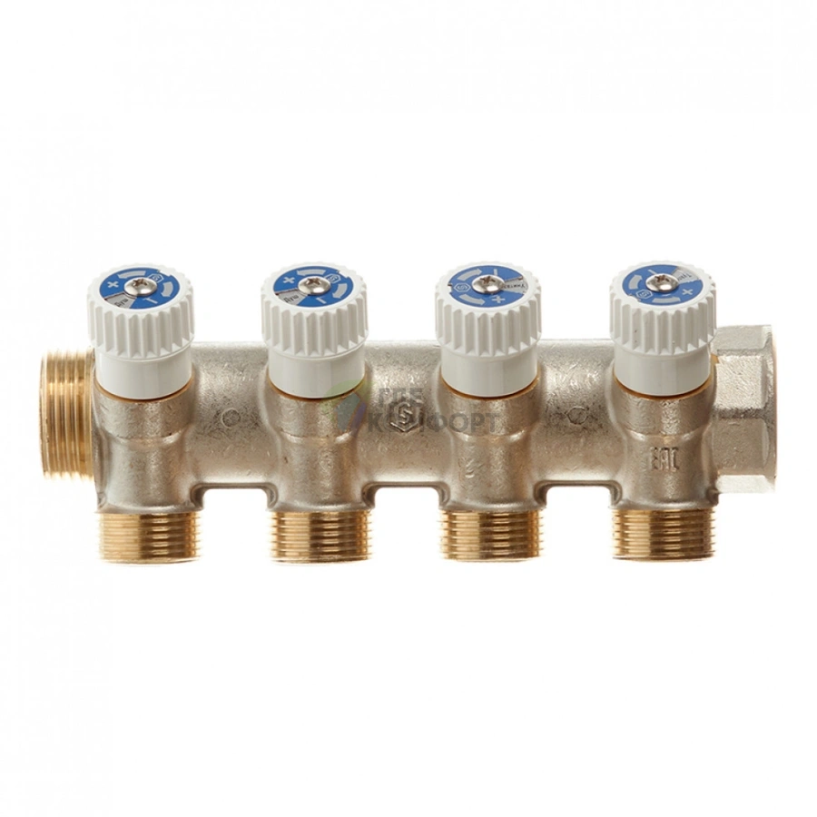 Коллектор распределительный Stout (SMB 6851 013404) 1 ВР(г) х 4 выхода 3/4 НР(ш) ЕК х 1 НР(ш) регулируeмый