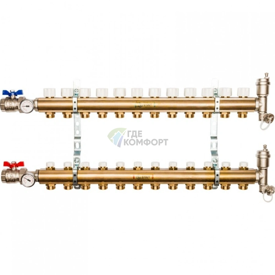 Коллекторная группа из латуни без расходомеров на 12 выходов STOUT