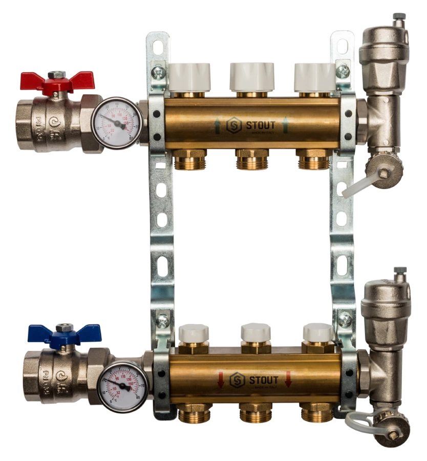 Коллекторная группа STOUT на 3 выхода: выгодное решение для грамотного распределения теплоносителя
