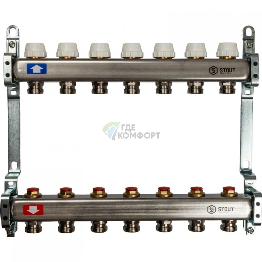 Коллектор STOUT SMS 0922 000007 на 7 выходов, из нержавеющей стали без расходомеров