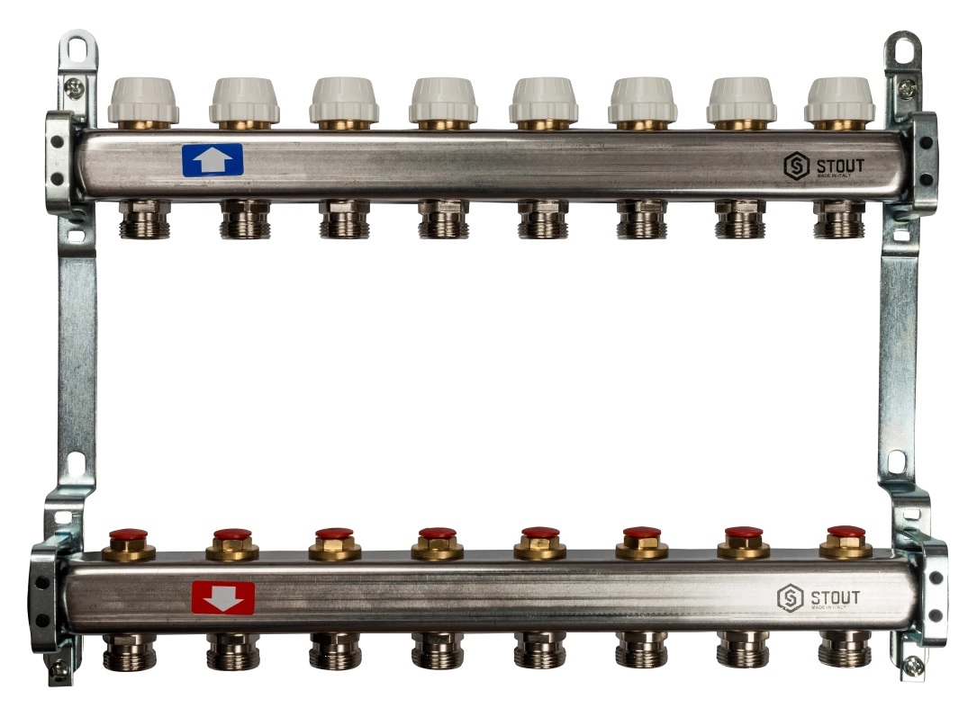 Коллектор Stout из нержавеющей стали с запорными кранами 8 выходов