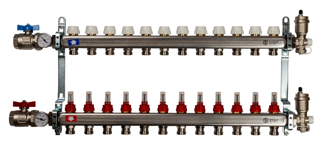 Закажите готовый коллекторный блок STOUT, чтобы быстро и профессионально смонтировать надежную систему отопления с возможностью тонкой настройки.