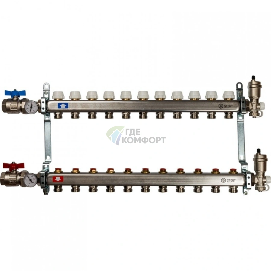 Коллекторная группа в сборе из нержавеющей стали без расходомеров на 11 выходов STOUT