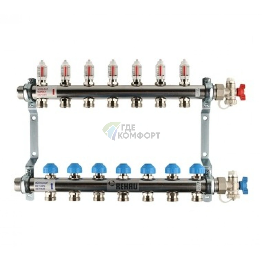 Коллекторная группа REHAU HKV-D на 7 выходов (РЕХАУ - 12080711002)1x3/4ЕК из нержавеющей стали с регулирующими и термостатическими вентилями и расходомерами