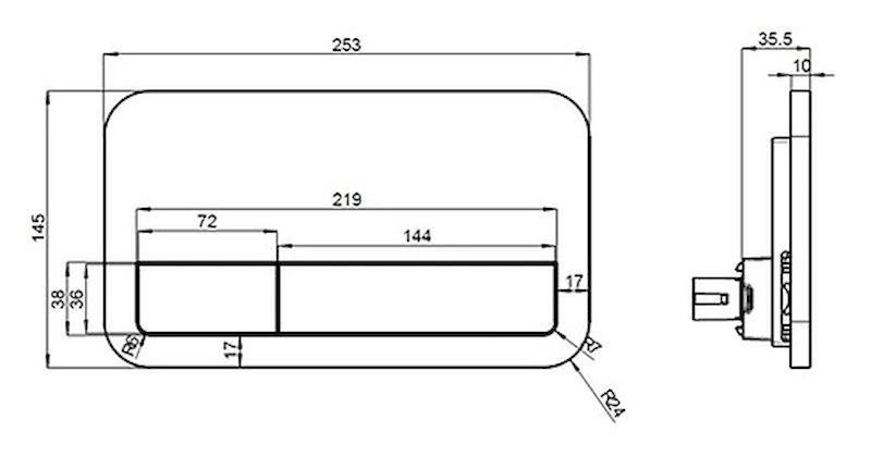 - Отделка смывной панели и кнопки: матовый хром, устойчивый к влаге и отпечаткам.