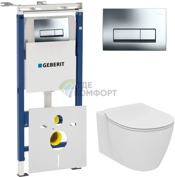 Комплект для скрытого монтажа: чаша Ideal Standard Connect AquaBlade + инсталляция Geberit с микролифтом и шумоизоляцией