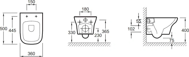 - Чаша предназначена для скрытого настенного монтажа, создавая эффект парения.