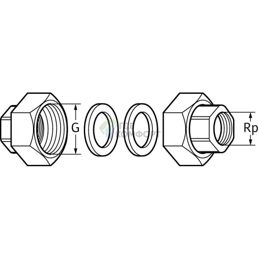 Комплект чугунных гаек UNION KIT 1 1/2" х 1" F (547121060) ДАБ