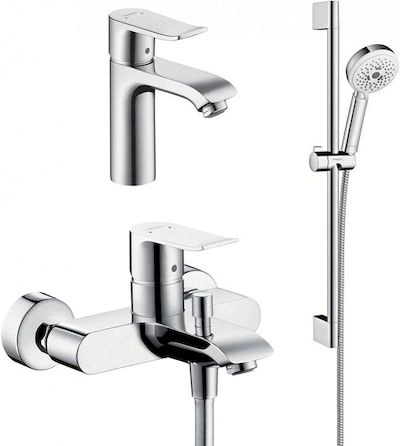 Комплект для ванной Hansgrohe Metris: смеситель для ванны с душем, смеситель для раковины и душевой гарнитур