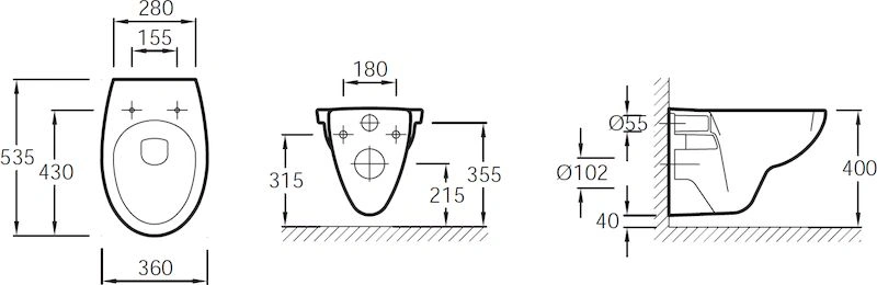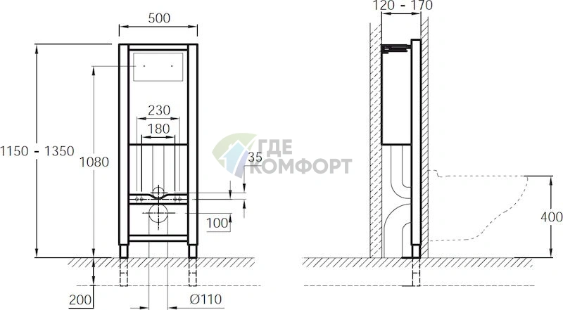 - Габариты (ДхШхВ): 500 x 365 x 450 мм (чаша). Высота от пола до ободка — стандартные 400 мм.