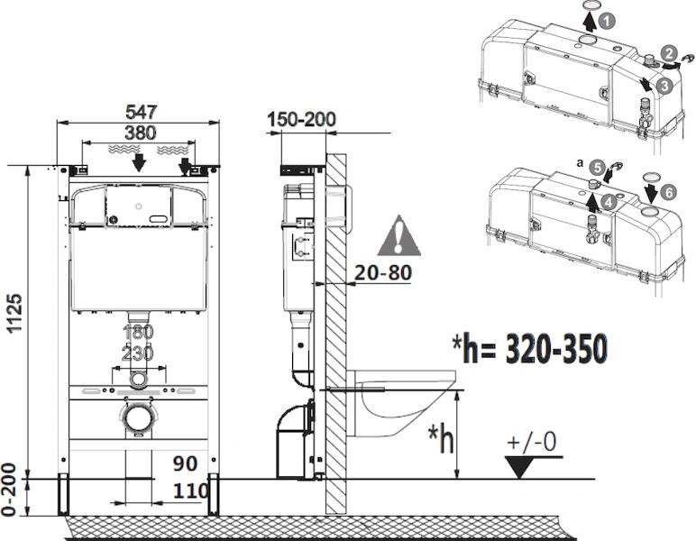 - Крепление бачка: На раму инсталляции