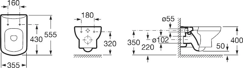 - Модель: Roca Dama Senso (подвесной унитаз с инсталляцией)