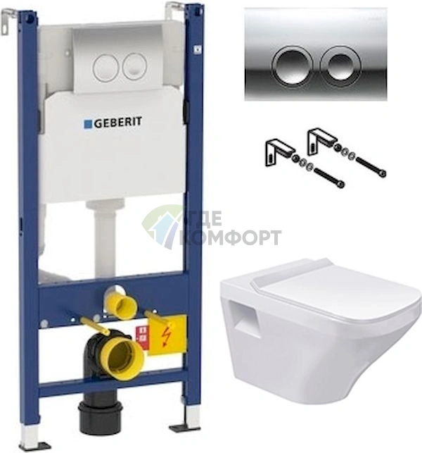 Комплект Система инсталляции для унитазов Geberit Duofix Delta 458.124.21.1 3 в 1 с кнопкой смыва + Чаша для унитаза подвесного Duravit DuraStyle 253