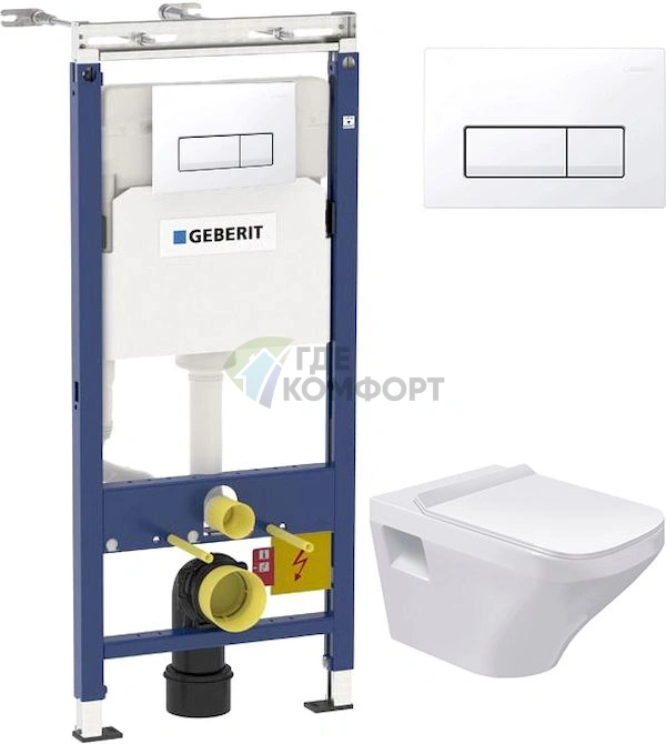 Комплект Система инсталляции для унитазов Geberit Duofix Платтенбау 458.125.11.1 4 в 1 с кнопкой смыва + Чаша для унитаза подвесного Duravit DuraStyl