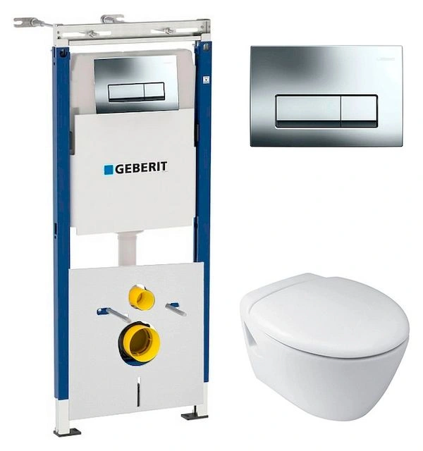 Комплект включает подвесной унитаз Jacob Delafon Presquile E4440, инсталляционную рамку Geberit с бачком, элементы крепления, кнопку смыва, а также шумоизоляцию для тихой работы системы. Сифон и крепеж для скрытого монтажа, как правило, также входят в комплект. Рекомендуем уточнить полный перечень у продавца для конкретной модели.