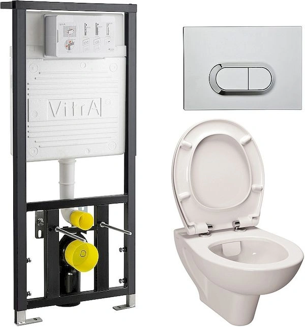 Подходит ли комплект для любых унитазов? Нет, он предназначен в первую очередь для совместимых систем инсталляции и бачков скрытого монтажа VitrA. Всегда проверяйте совместимость модели.