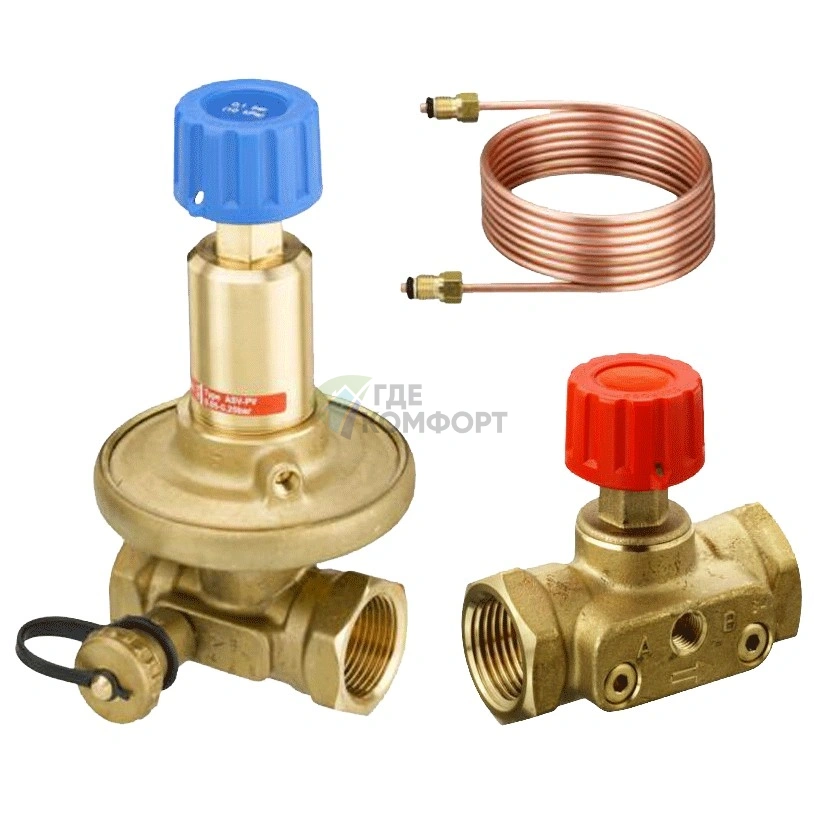 Предварительная комплектация на заводе экономит ваше время на монтаже и настройке. Клапан APT является регулятором с импульсной трубкой, а CDT выполняет функции балансировочно-запорного клапана с измерительными ниппелями.