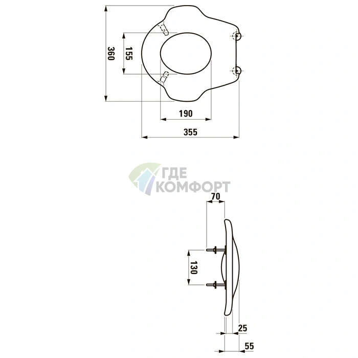 Сиденье оснащено универсальным креплением. Оно обычно устанавливается поверх стандартного взрослого сиденья унитаза с помощью регулируемых фиксаторов или защелок. Для монтажа следуйте инструкции, прилагаемой к комплекту.