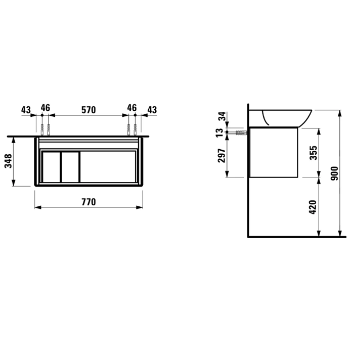 Тумба под раковину LAUFEN INO 8.1330 с выдвижным ящиком, 770x350x355 мм, белая матовая (4.2540.1.030.170.1)