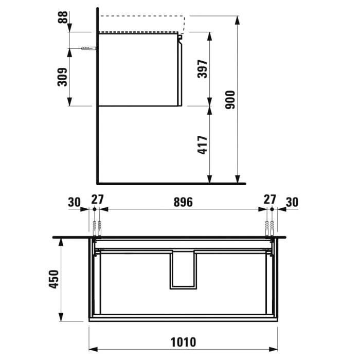 Тумба под раковину LAUFEN PRO S 1010 мм белая матовая — с ящиком для раковины 813966 (4.8355.2.096.463.1)