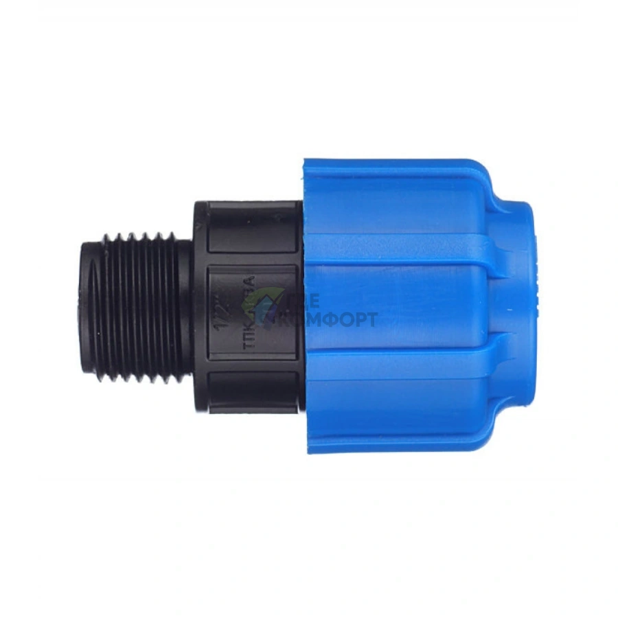 - Полная совместимость: Муфта предназначена для труб ПНД (полиэтилен низкого давления) диаметром 20 мм и создает переход на наружную резьбу 1/2 дюйма.