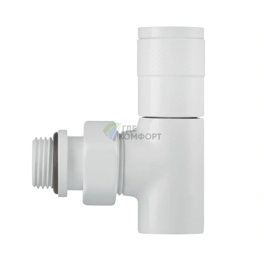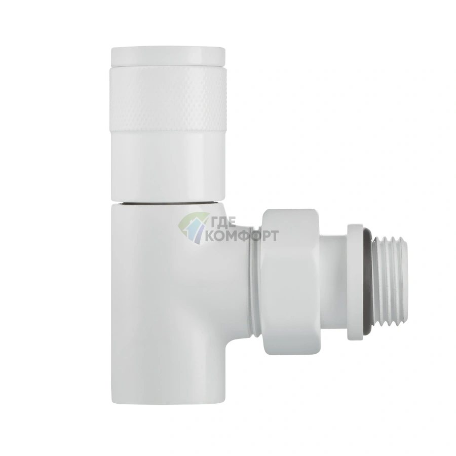Вентиль с термоголовкой (в комплекте) автоматически поддерживает заданную температуру, избавляя от ручных настроек. Запорный кран американка дает возможность быстро перекрыть воду для обслуживания или замены радиатора без слива всего контура.