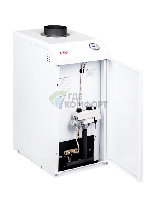 Встроенная автоматика контролирует работу: датчик тяги отключает подачу газа при затухании пламени или проблемах с дымоходом. Манометр и термометр на фронтальной панели позволяют визуально следить за параметрами системы. Купить напольный газовый котел Очаг КСГ-16 Е - значит получить стабильный и безопасный источник тепла по доступной цене.