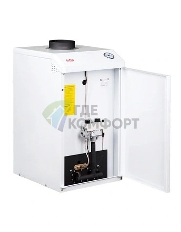 Мощность устройства 20 кВт оптимальна для большинства коттеджей. Высокий КПД и экономичный расход топлива помогают снизить счета за отопление. Конструкция с открытой камерой сгорания проста в обслуживании.