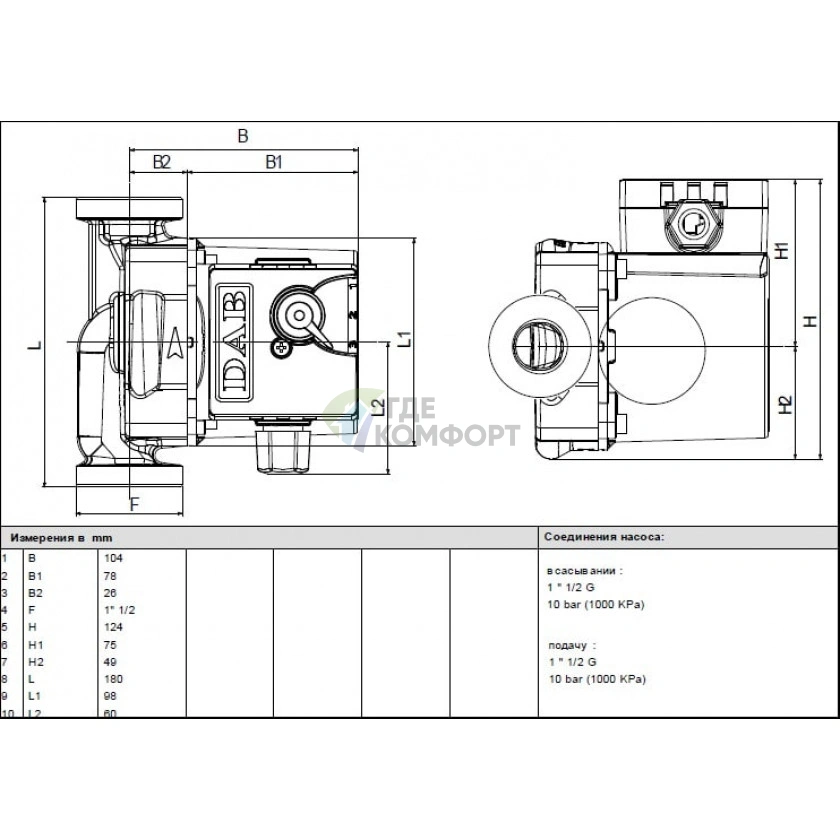 Насос циркуляционный бытовой DAB 1 VA 65/180: Тихая циркуляция для отопления и ГВС