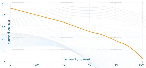 Модель способна поднимать воду с глубины до 8 метров и обеспечивать максимальный напор до 40 метров. Ее производительность достигает 60 литров в минуту, что достаточно для одновременного снабжения нескольких точек водоразбора: кухни, душа, поливочного крана.