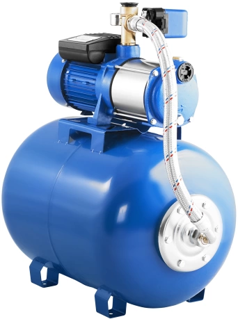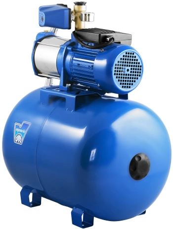 В основе системы — центробежный самовсасывающий насос и 50-литровый гидроаккумулятор. Мембранный бак стабилизирует давление в системе, сокращает частоту включений двигателя и защищает его от износа.