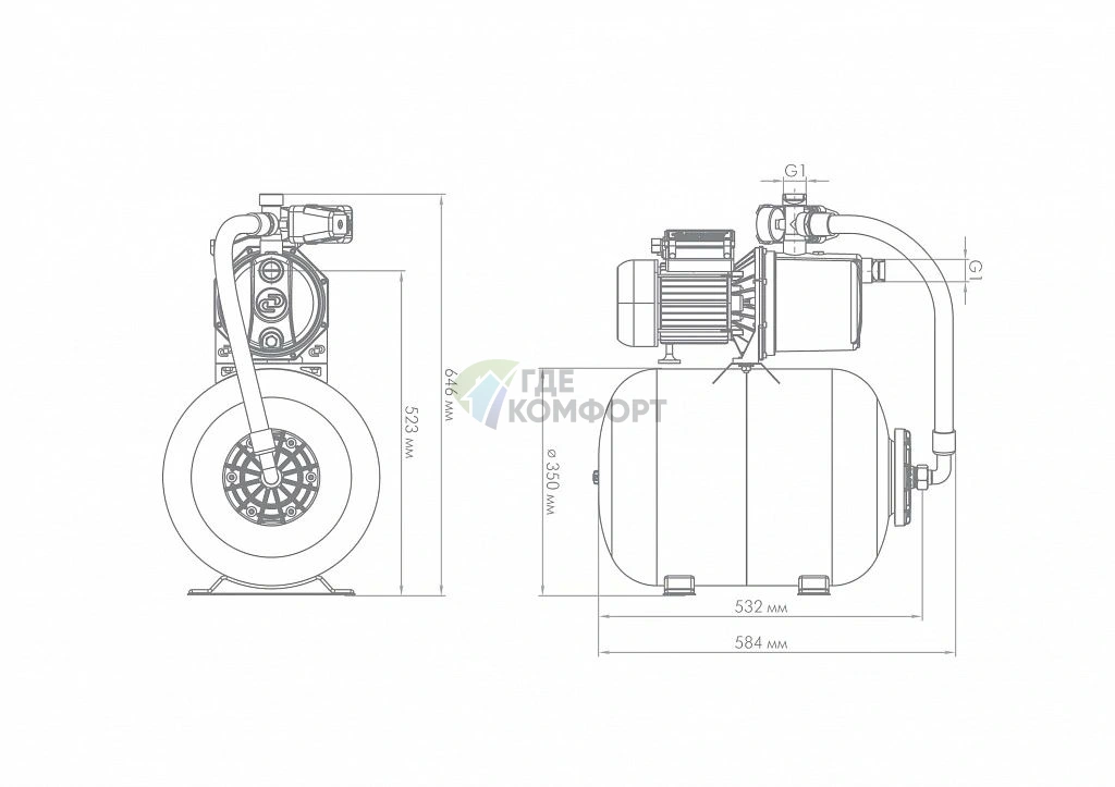 - Объем гидроаккумулятора: 50 л