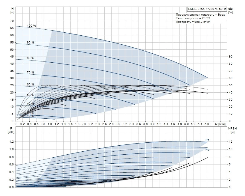 - Номинальные параметры: 3.7 м³/ч при напоре 39.4 м;