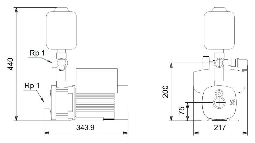 Установка поставляется в сборе со всеми необходимыми компонентами для подключения. Монтаж осуществляется через резьбовые соединения Rp 1″. Станция сохраняет работоспособность при температуре окружающей среды от -20°C до +55°C, что позволяет устанавливать её в неотапливаемых помещениях. Для защиты двигателя предусмотрена термозащита от перегрузок.