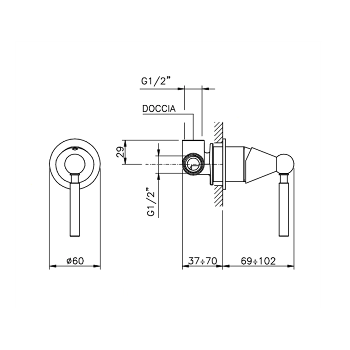 Смеситель для душа Nicolazz Torre: встраиваемая модель на 1 отверстие в хроме (3906CR)