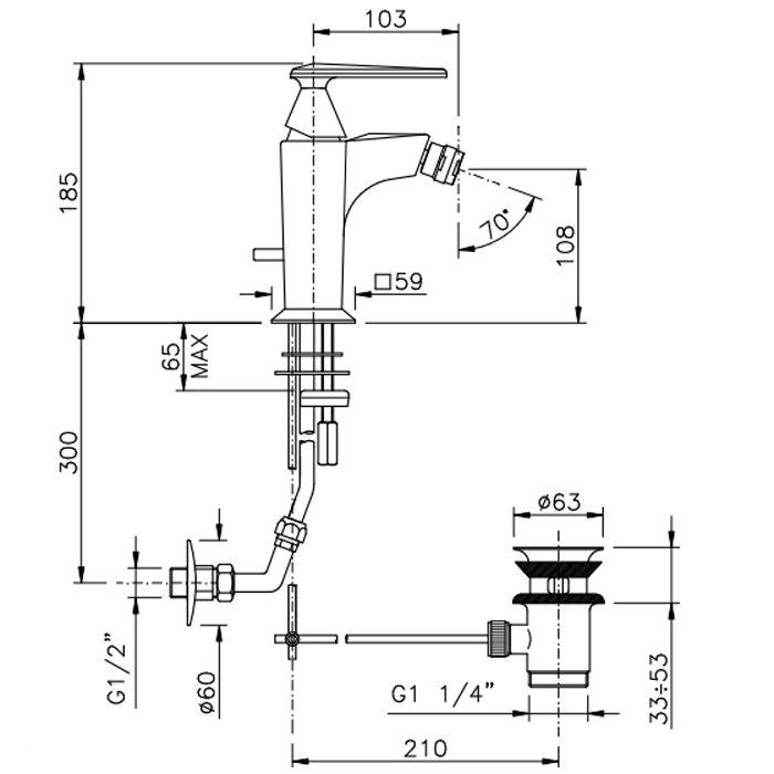 Смеситель для биде Nicolazz Vincent: настенный монтаж, донный клапан (3003CR35)