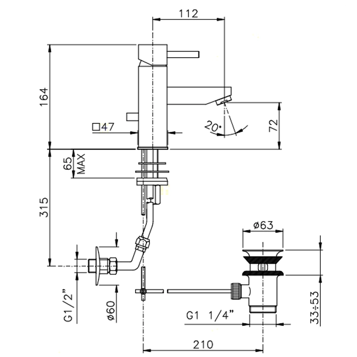 Смеситель для раковины Nicolazzi Antelao с донным клапаном: хром, излив 112 мм (3802CR)